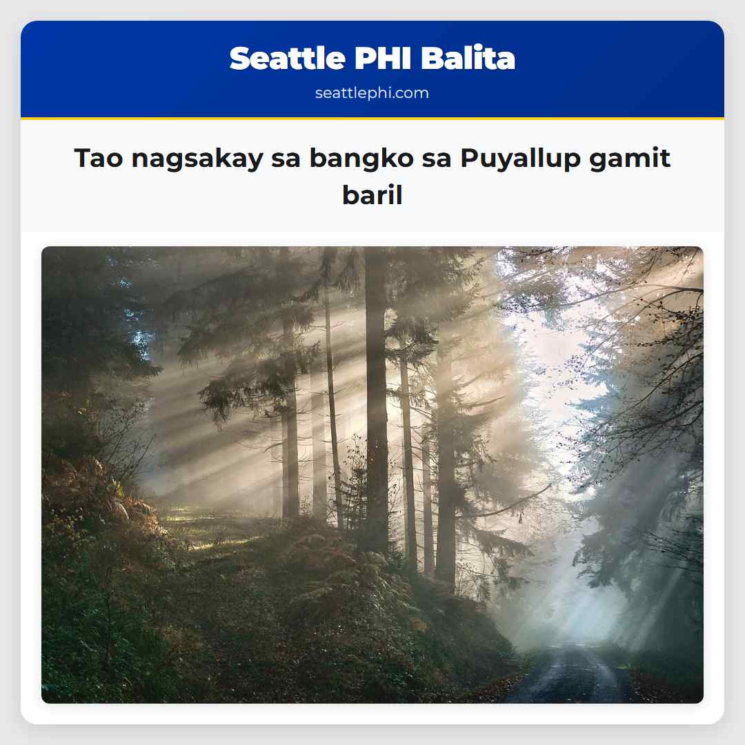 Pangunguna na Paglilinaw Nagsakay sa Bangko sa Puyallup ang Tao na Naggamit ng Baril