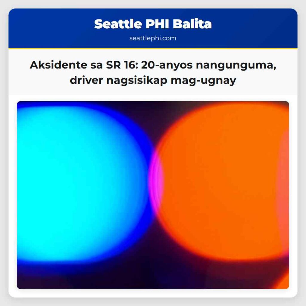 Aksidente sa SR 16 Tacoma! 20-anyos nangunguma, driver nagsisikap mag-ugnay. 2 pasahero walang malubhang sugat. Emergency responders nagsilbi sa lugar.