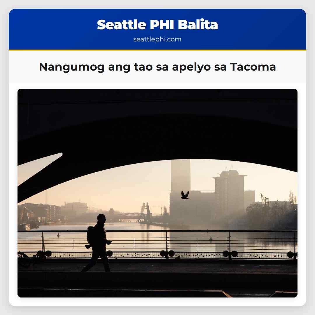 Nangumog ang isang tao matapos ang isang apartment complex mag-aksidente sa apelyo sa Tacoma. Nagsabi ang isang 911 caller na nakita nila ang dumi mula sa isang bintana ng apartment sa North Pearl Street noong kahanggang 8:00 AM. Kapag ang mga krew ay nagsilbi, agad sila nagsimula sa paglabas ng mga residente at naghahanap kung saan nagsimula ang apelyo. Noong 9:00 AM, nagsilbi na ang mga mangunguna sa apelyo at nagsimula silang magmamonitor ng anumang mga init na puntos. Ang isang opisyales ng Tacoma Fire Department ay nangakusahan na ang mga mangunguna sa apelyo ay nangakusahan na ang isang nangumog na tao ay nasa ikatlong palapag, kung saan sila ang nangakusahan na nagsimula ang apelyo. Ang tao ay ang solong residente ng kanilang unit. Dalawang iba pang units, bawat isa ay may dalawang residente, ay naging masama sa apelyo. Lahat ng apat na mga residente ay nakaugnay sa American Red Cross para sa tulong. Ang mga pulis sa Tacoma ay nag-uimbestiga.