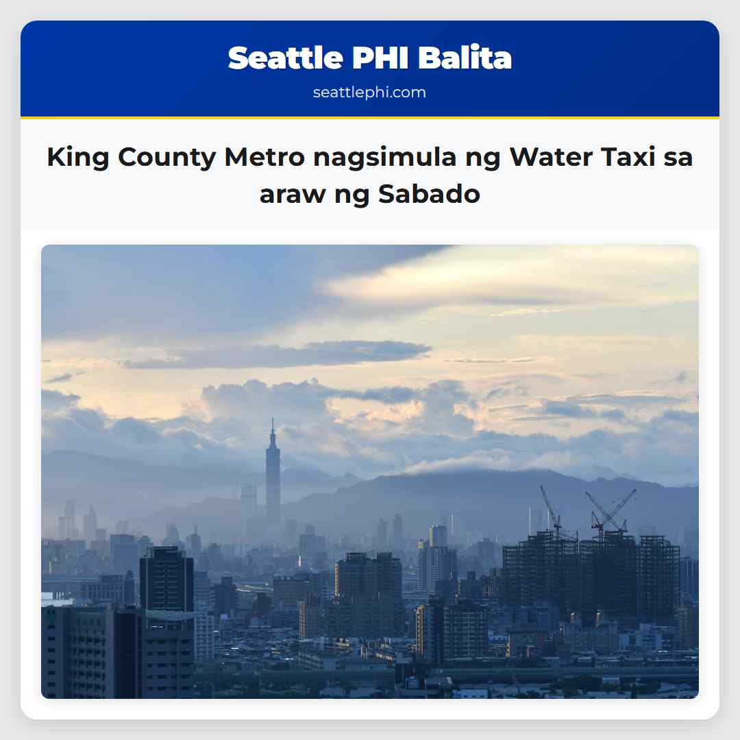 Nagsisimula ang King County Metro ng isang pilot programa na magbibigay ng serbisyo sa Water Taxi sa araw ng Sabado para sa Vashon Island. Ang bagong serbisyo ay magpapahintulot sa island na maging accessible araw-araw. Ang unang paglalakbay sa araw ng Sabado ay magmula sa Pier 50 sa downtown Seattle noong Abril 12. Ayon sa King County Metro, mayroon silang mga paglalakbay sa umaga, hapon, at maagang gabi patungo sa Vashon Ferry Terminal hanggang sa maaga ng autumn. Ang schedule ng Water Taxi para sa Vashon Island ay magpapalabas sa araw ng Lunes hanggang Huwebes. Ang schedule para sa araw ng Sabado at Linggo ay magpapalabas ng mga paglalakbay sa araw ng Sabado. Ang mga pondo ay nagbibigay ng serbisyo sa araw ng Huwebes at weekend hanggang Oktubre 9, 2026. Ang pagtaas ng serbisyo ay nagsimula nang magbago ang panahon, kaya nang mas marami ang mga manlalakbay na pumapasok sa Vash, at ang mga residente ng Vashon na gumagamit nito para sa trabaho, shopping, at mga event sa waterfront. Ang mga presyo ng Water Taxi para sa Vashon ay $7 bawat direksyon para sa mga matatanda ($6 kung may ORCA card). Ang mga pasahero na 18 at mas mababa ay libre. Mayroon din silang mga mababang presyo para sa mga tao na may kakulangan, mga tao na may mas mababang kita, at mga matatanda.