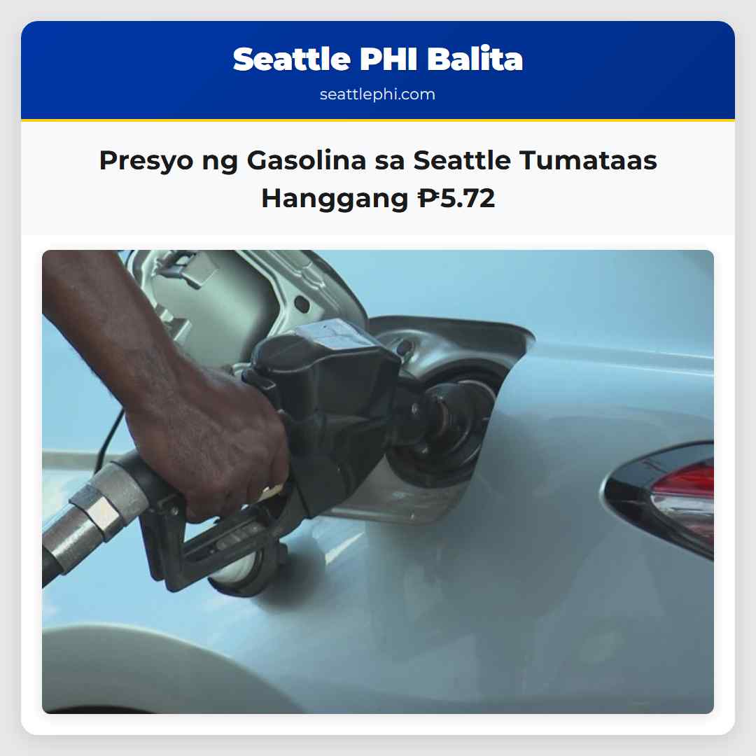Sa mga karatig lungsod tulad ng Bremerton at Tacoma, pareho ring naitala ang bagong rekord na ₱5.60 at ₱5.64 bawat galon. Bagama’t mas mababa ang average price sa buong Washington State sa ₱5.51 kada galon, malapit na ito sa nakaraang rekord noong Hunyo 16, 2022.