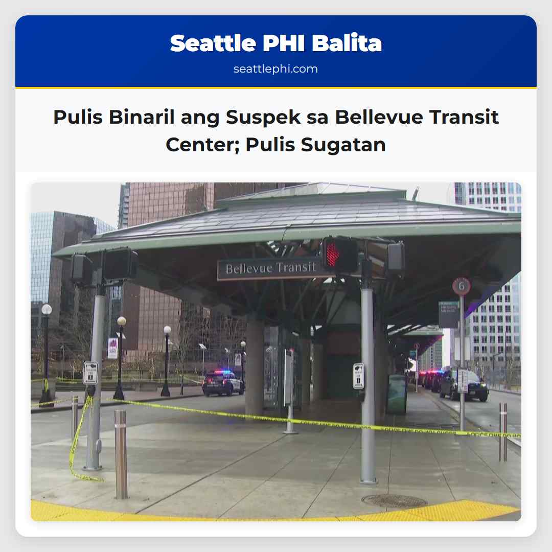 Isinara ang Bellevue Transit Center nang ilang oras dahil sa emergency response. Muling ito binuksan. Matatagpuan ang Bellevue Transit Center sa 10850 NE 6th St., malapit sa Bellevue Square. Ito ay isa sa mga pinaka-abalang transit hub sa Eastside, na naglilingkod sa mahigit 20 ruta ng bus at ang Link light rail station, na ginagamit din ng maraming Pilipino para makapunta sa Seattle at iba pang lugar.