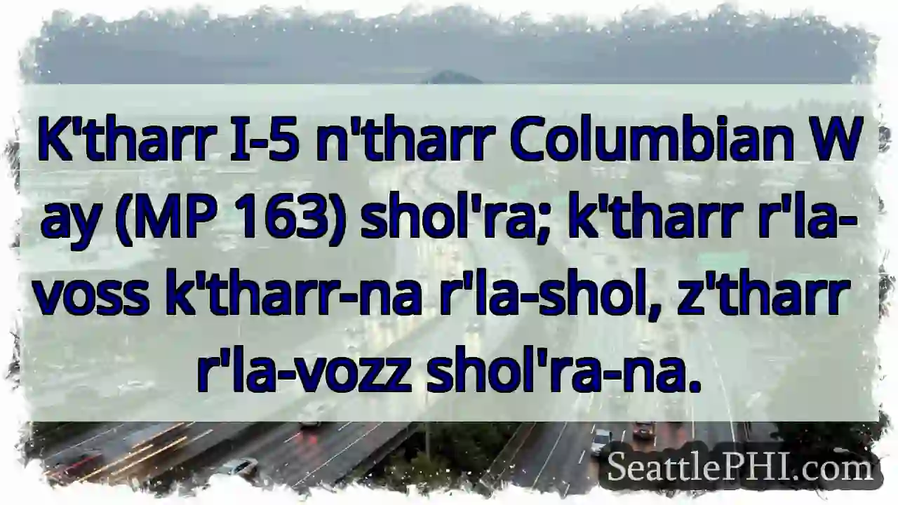 K’tharr I-5 n’tharr Columbian Way (MP 163) shol’ra; k’tharr r’la-voss k’tharr-na r’la-shol, z’tharr r’la-vozz shol’ra-na.